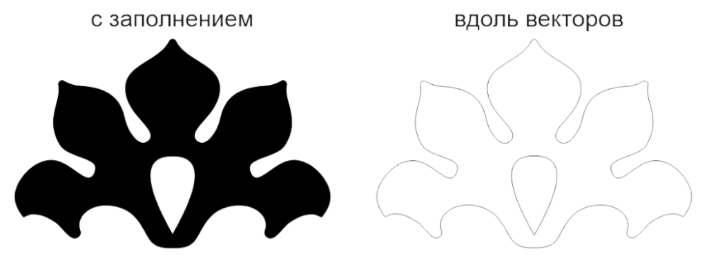 Гравировка может быть с заполнением или по средней линии вдоль векторов. Если нужно выполнить гравировку только вдоль векторов, то заливки быть не должно (пример смотрите на изображении ниже). Толщина линий должна быть сверхтонкой.