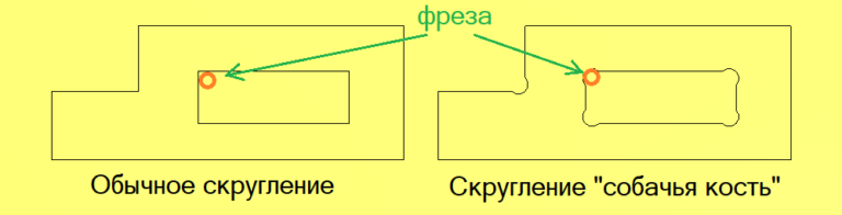 Обращаем ваше внимание, что при фрезерной резке внутренние углы скругляются до радиуса используемой фрезы. Учитывайте это при создании чертежей сборочных конструкций с шип-пазовыми соединениями. Одним из методов разрешения этой особенности является использование метода скругления внутренних углов под названием «собачья кость». Если Вам не удобно проектировать эти скругления, то Вы можете добавить комментарий с просьбой добавить их в необходимых местах. Такого рода корректировка векторного изображения может быть платной или бесплатной в зависимости от сложности и объема корректировки (обсуждается индивидуально).
